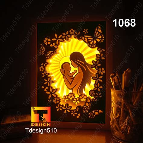 Motherhood Paper Cut Light Box 3D Shadow